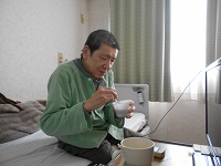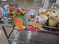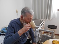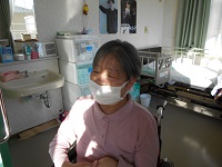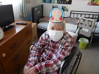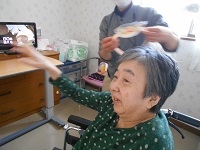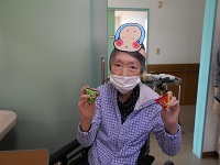 ご利用者様にお面を付けて頂き、豆まきをして頂きました。