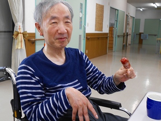 おやつでマスク外していますが、美味しく食べて頂いている姿アップ致します。