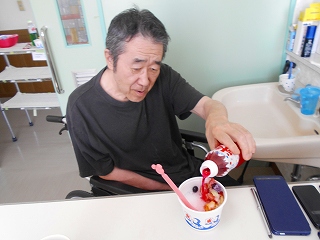 大好評でした^^ご自身でかき氷を作ってみたり、シロップかけてみたりと楽しんでいました。