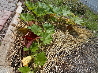 かぼちゃの葉の下に藁ひくと良いのよと職員が教えてくれて