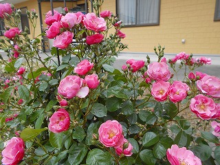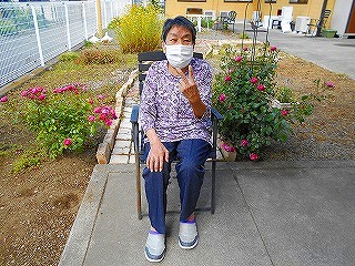 薔薇が咲いたと歌いながら、お庭を少し歩く利用者様^^