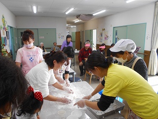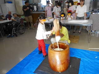 助っ人の皆様、入居者様のご家族様に手伝っていただき