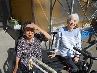 メディス伊勢崎の玄関前にあるソファーで大声で