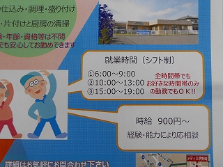 時間帯は相談にのれますし、先輩の調理員さんがついて仕事内容は教えます