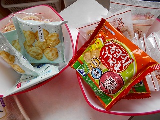 甘い物と、おせんべいを1つづつ食べてもらいました