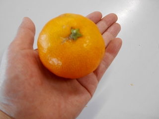 スタッフが庭でできた、ミカンを持ってきてくれました