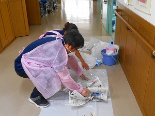 本日は看護士 指導の元 感染予防(嘔吐物の処理)の研修を