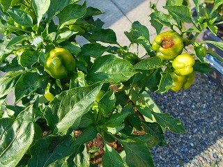ピーマンも実がなっていますが、暑さのあまりあまり苗に元気がない・・・