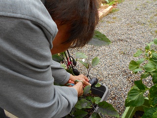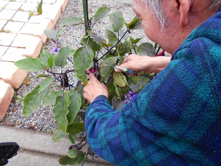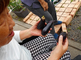 茄子の方が大きくなってきたため、入居者様に収穫して頂きました(^.^)