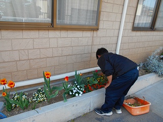 入居者様も咲いているチューリップを鑑賞です☆