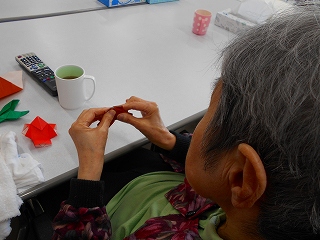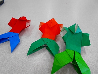 折り紙にて、やっこさんや鶴・風船を作っていたり、