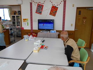 TVにて放送が始まると、入居者様方TVにくぎ付けです。