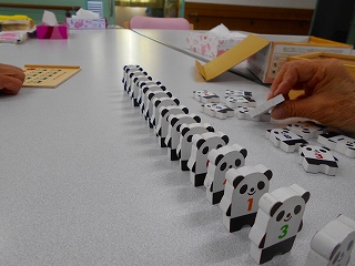並べる際は、真剣な眼差しでドミノを並べています(^o^)