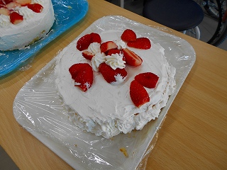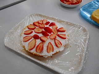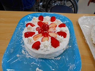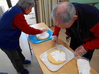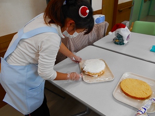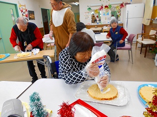 おやつの時間に、入居者様と職員とでクリスマスケーキ作りを行いました。