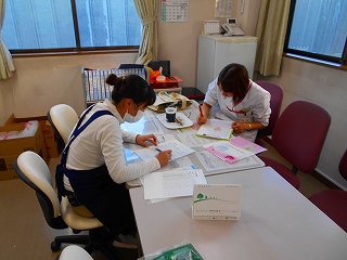 訪問診療後、事務所内では薬剤師の方と看護士の方とで内服薬についての話を☆