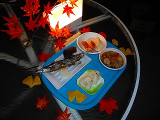 秋の味覚としましては、「栗ごはん・芋煮・さんま・焼きしいたけ・焼きナス・なし・柿・焼きいも」