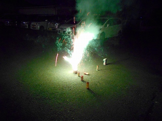 花火を行いました。打ち上げ花火や噴出花火を行い、
