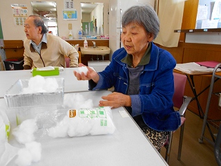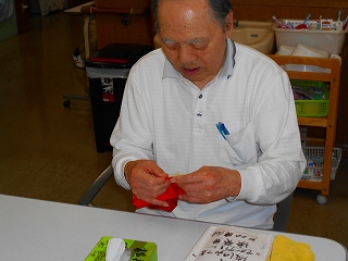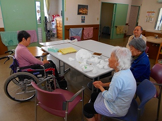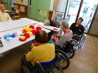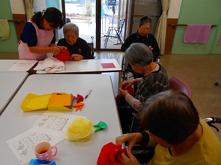 イベントに向けて、入居者様にもご協力して頂き、花飾りの作成です。