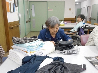 入居者様の中に、いつも職員が洗濯物を畳んでいると