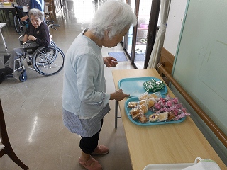 入居者様には、お好きなおやつを選んでいただきました。