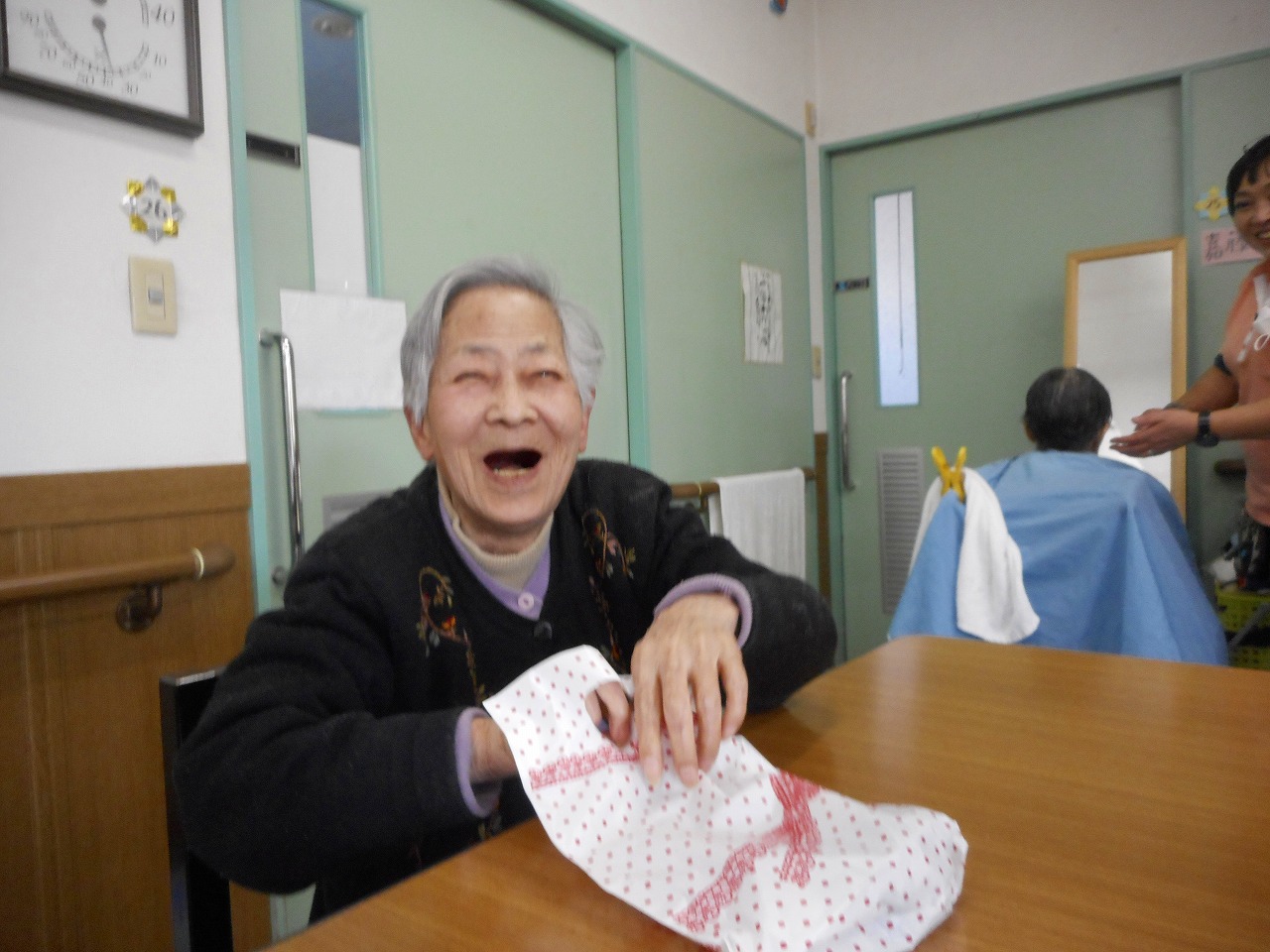 お髪がきれいになったら、職員から入居者様全員にバレンタインのプレゼントです。