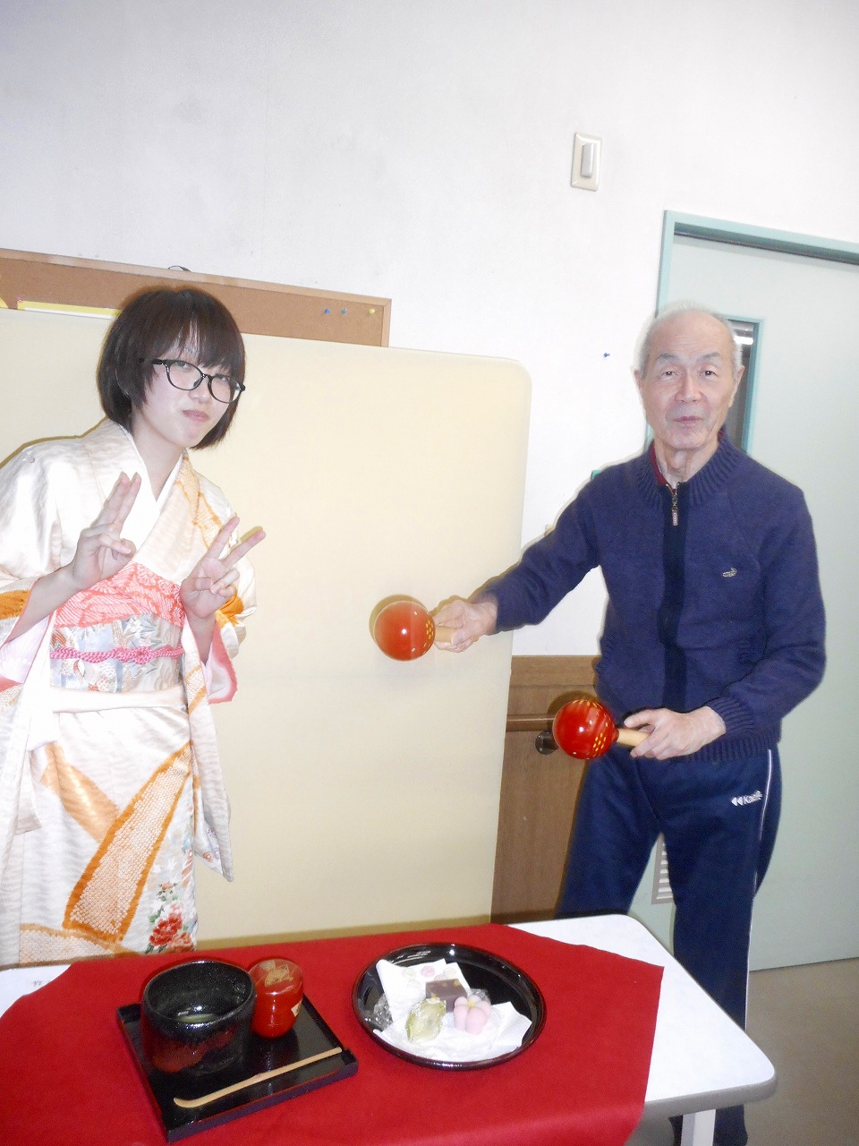 男性入居者様は、あまりの嬉しさに、マラカスで踊りながらパチリ!