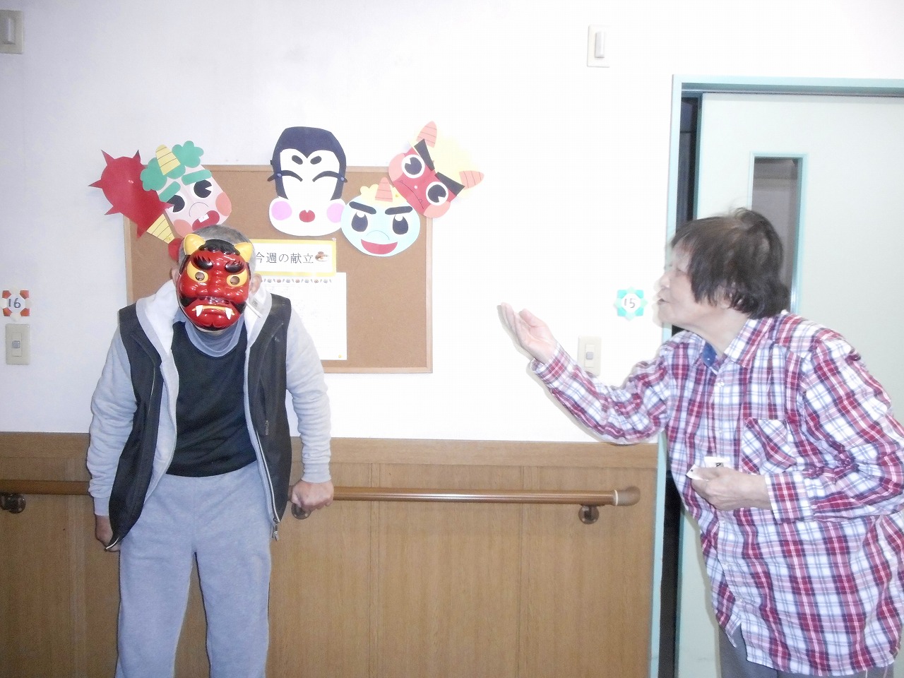 昨年に続き、今年も豆まきの鬼を 入居者様が立候補をして行いました。