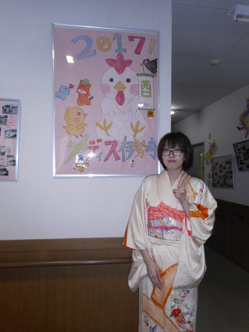 最後に女性職員が書いた干支の酉と記念写真を撮りました!