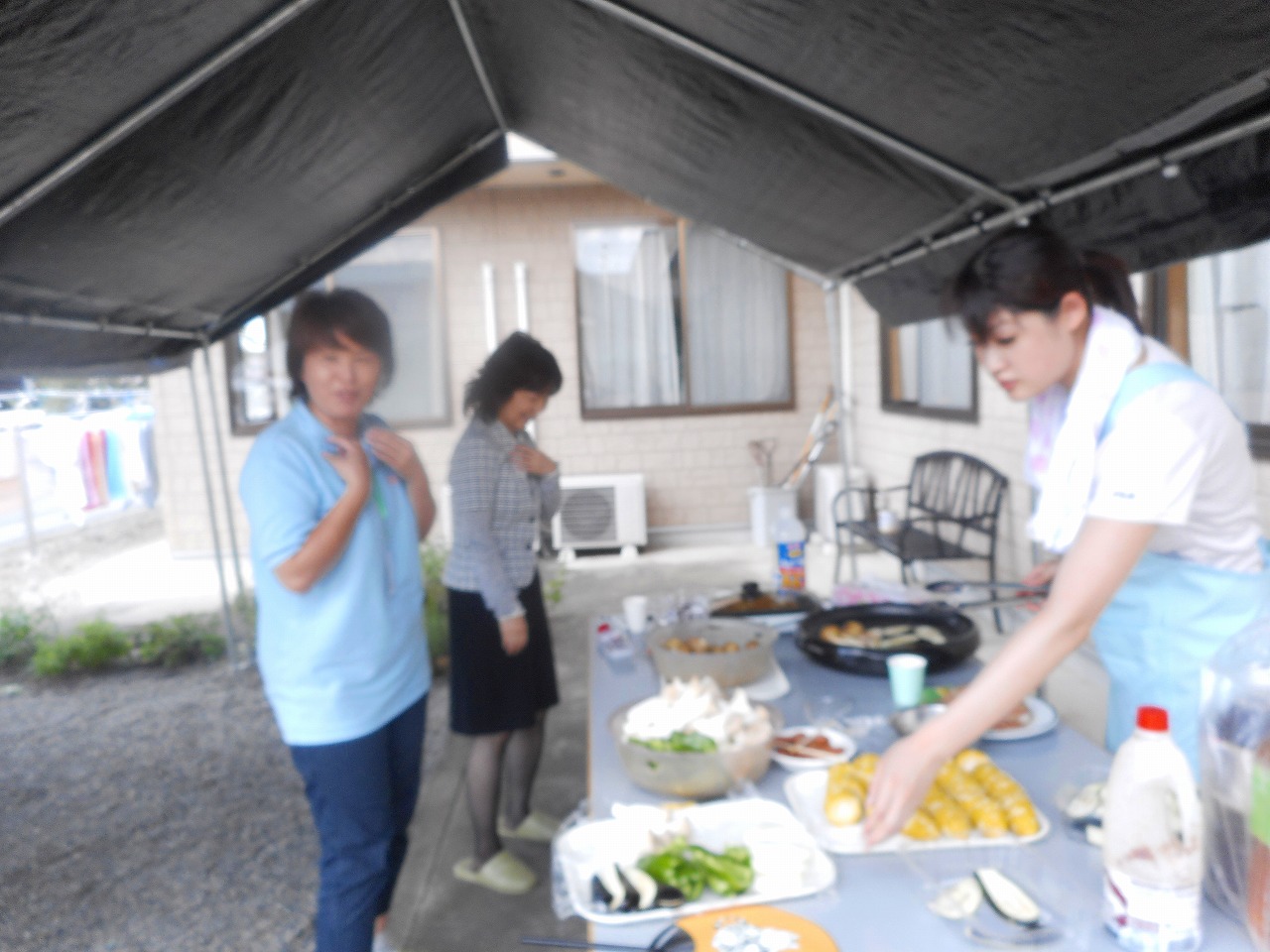 そして、みんなが張ってくれたテントの下は、日影が出来、真夏のバーベキューを満喫しました!