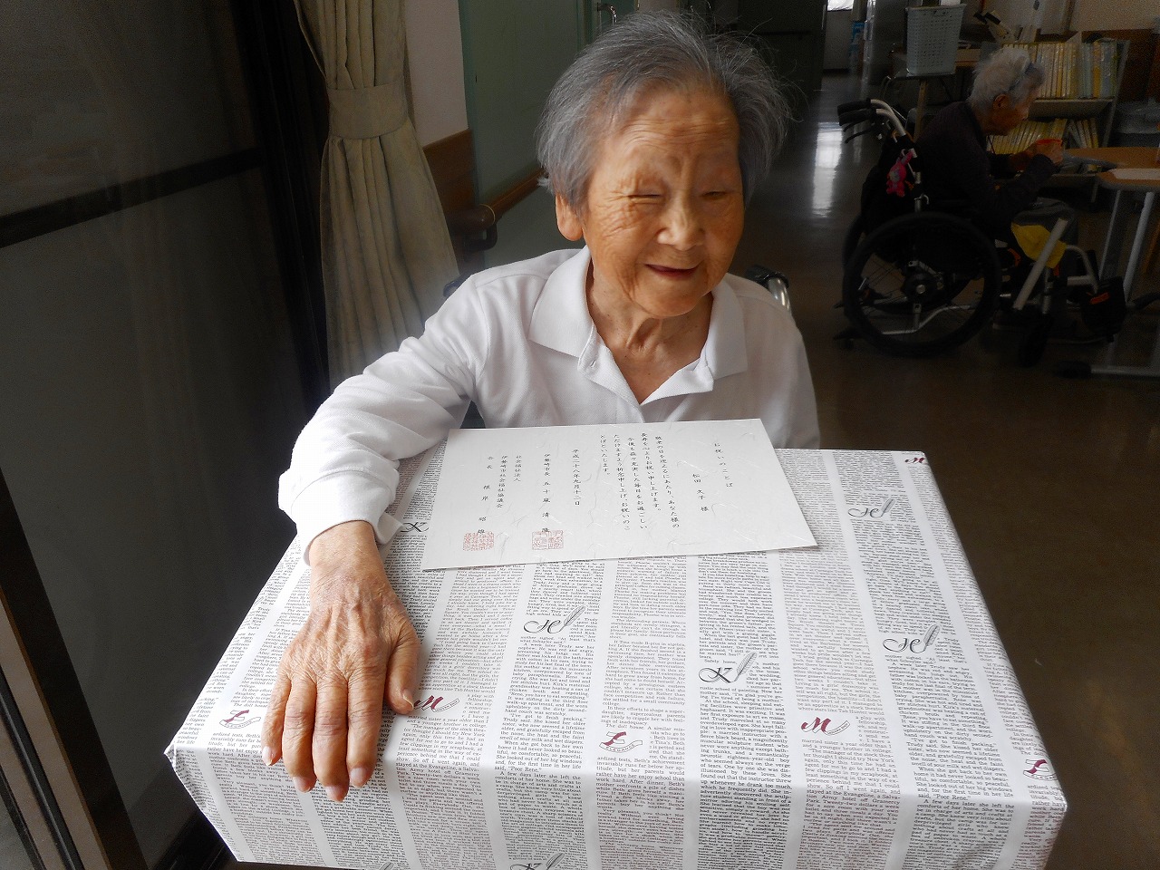 他の入居者様の前での授与で、皆様も長寿のお祝いを一緒に喜んでくださいました!