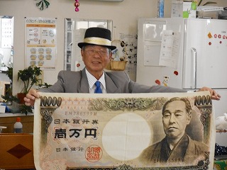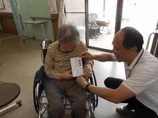 利用者様のお誕生日当日、伊勢崎市役所高齢化の職員の方々がお見えになり、金一封をお持ちくださいました。恒例の記念写真です。