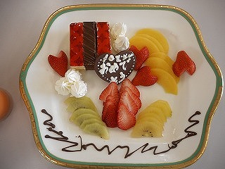 大きな口をあけてチョコケーキをパクリ、イチゴもパクリ、生クリームをペロリ。