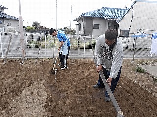 バーベキューの下地を固め、これから砂利入れを行うとほぼ完成です。
