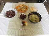調理員さんに水羊羹を作ってもらい、桃・ミカン・パイナップル・キーウィ―・あんこ・アイスクリームに