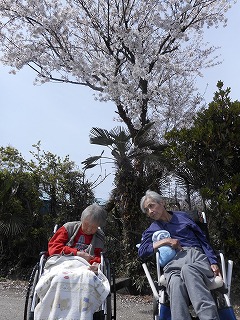 暖かい日に、利用者様をお誘いして散る前の桜を見てきました。