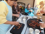 暖かい午後、焼けるのが待ちきれずに、周りに皆さん集まってきます!