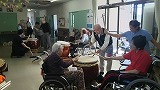 毎年和太鼓の響きに涙する利用者様も続出ですが、演奏後の和太鼓の体験は、すごく楽しそうです!