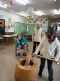 12月の日曜日に、利用者様とご家族、社員と一緒に重たい杵を担いでお餅を搗き、みんなでおいしく食べました。