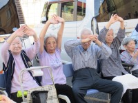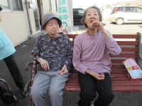 テーブルとイスを持って駐車場でおやつタイムとなります。