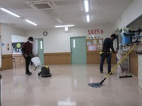 居室の隅々からホール、廊下と手際よく作業が行われ
