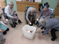 一斉にかごを目掛けて玉を投げ入れていきます。