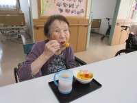 ご家族様より大好物の梅干しが送られてきた入居者様。