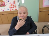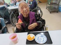 『甘くておいしいね』『こんな時期に珍しいね』と初物のすいかに