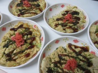 続いて青のり、紅しょうがをトッピングして完成です!!