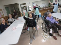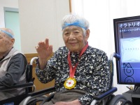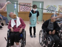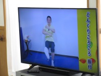 皆さんが良く知っている曲に合わせて体を動かす体操を行いました。