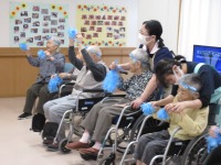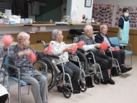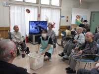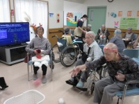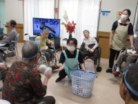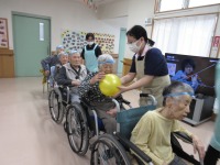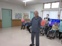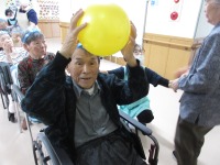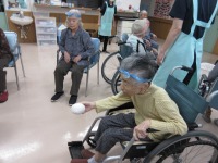 紅組と青組に分かれて後ろの人に頭の上からボールを渡す競技ですが