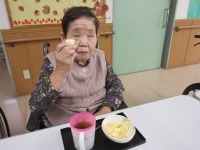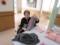 おやつの後は入居者様が洗濯たたみを手伝ってくださり