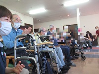 入居者様も交えてバースデーソングでお祝いさせていただきました♬