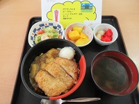 ビーフカレーにヒレカツをトッピング さらに温玉のせと