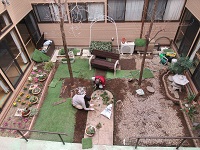 営繕さんが中庭に下りれるようにスロープを作ってくれています!